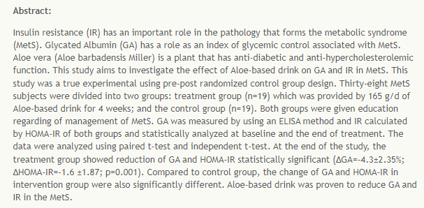 There’s a study showing that drinking aloe vera can reverse or significantly improve insulin resistance.